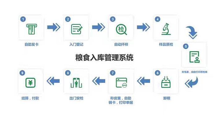 出入库一卡通管理系统采用无线射频技术、二维码识别技术、车牌自动识别技术等,实现粮食出入库作业按照一套规范的流程进行自动化控制,真正实现全方位视频监控扦样、化验及称重环节,做到作业流程全程录像、存储、可溯源通过结算卡对化验结果查询、品质确认、称重前确认、称重结果确认、卸货确认,确保品质、重量、仓位无争议。出入库作业的每个环节均由相应的专用设备为系统提供真实、准确的数据。